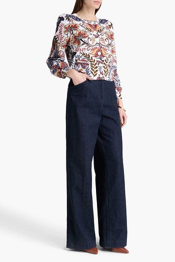 Jacquard-knit cotton-blend sweater