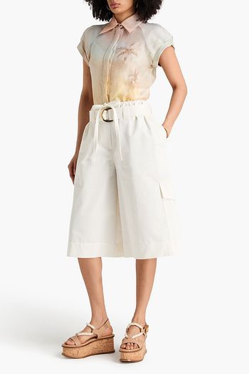 Belted cotton-twill shorts