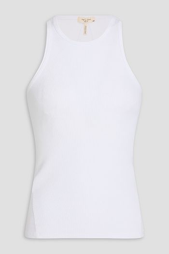 Cropped appliquéd ribbed cotton and merino wool-blend tank