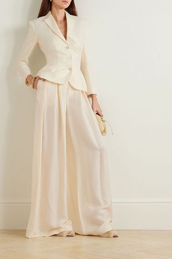 Linen, wool, silk and cashmere-blend wide-leg pants