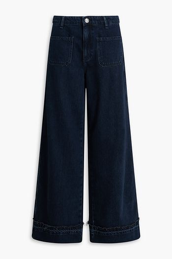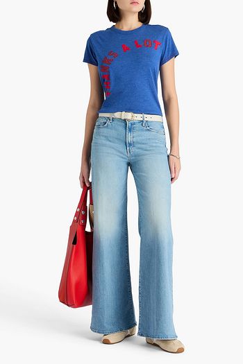Asymmetric guipure lace-trimmed taffeta maxi dress