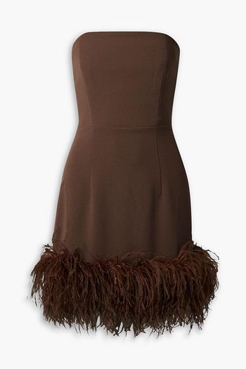 Feather-trimmed cotton-blend corded lace mini dress
