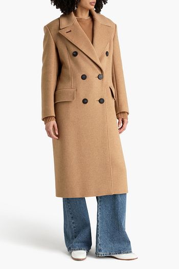 Shearling-trimmed checked quilted wool-blend tweed vest