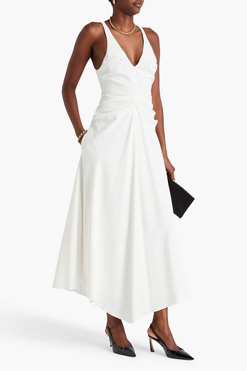 Cutout floral-appliquéd linen and silk-blend maxi dress