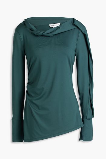 Off-the-shoulder cutout pointelle-knit bodysuit