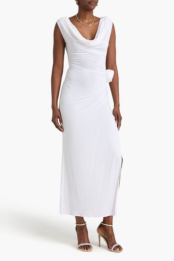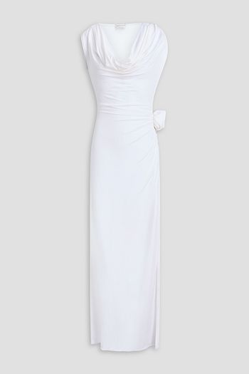 Floral-appliquéd draped stretch-jersey maxi dress