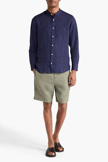 Printed linen and cotton-blend shirt