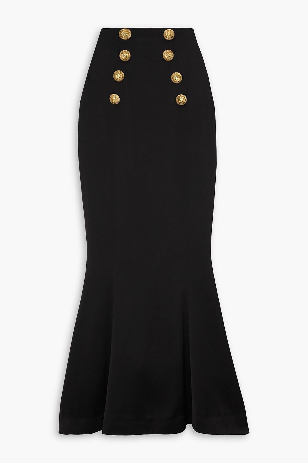 Nautical uniforms from years gone by inform Balmain's sophisticated maxi skirt. It's cut from wool to hug your waist and hips before opening to a fishtail hem. The front is traced with the house's signature gold buttons to create an authentic vintage feel.