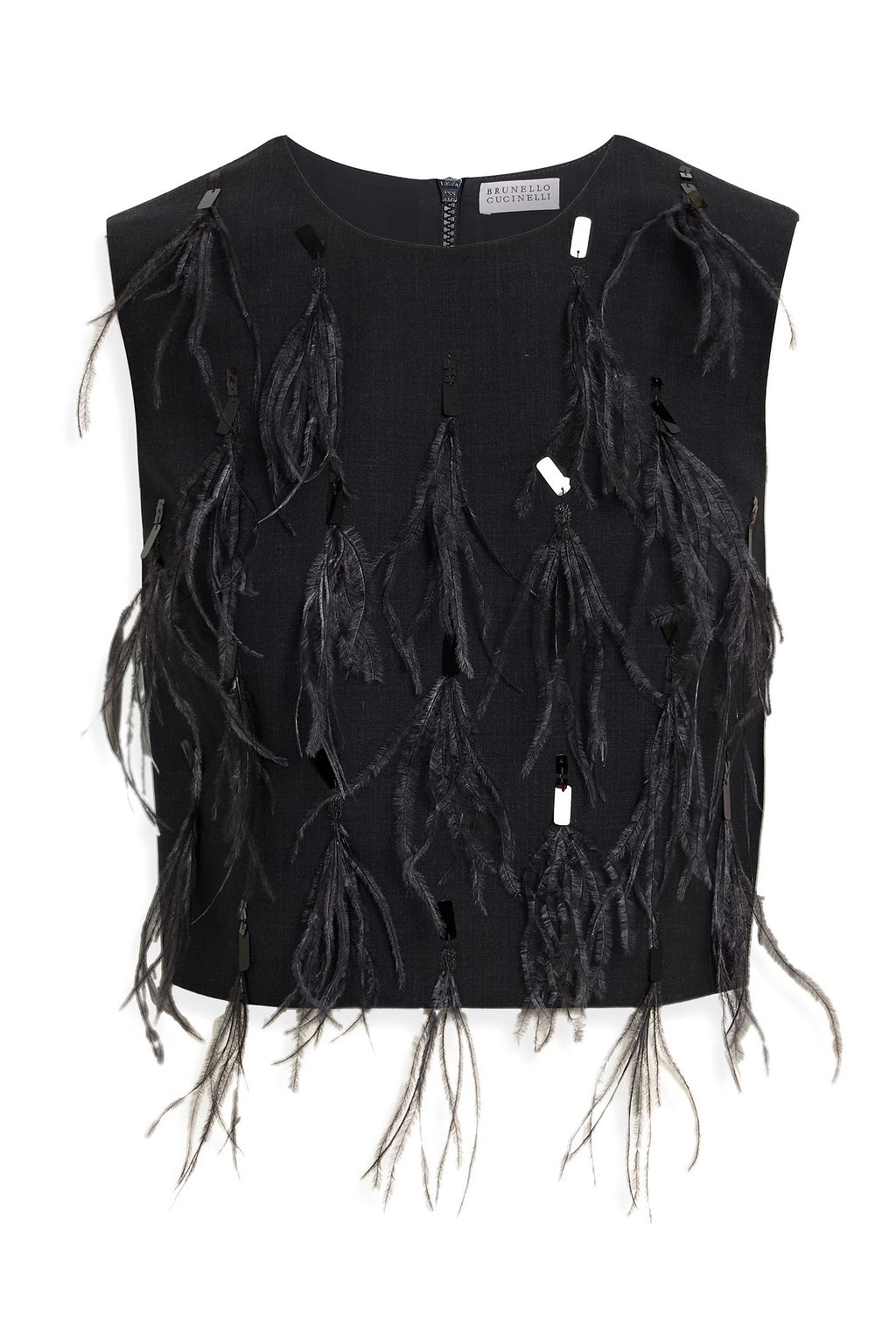 BRUNELLO CUCINELLI Cropped embellished wool-blend top