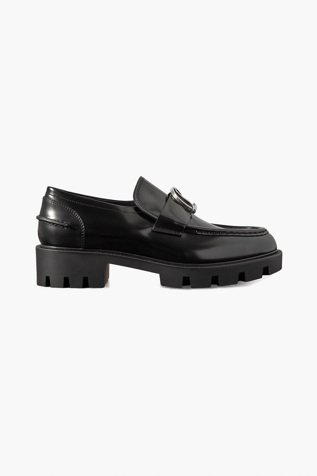 CHRISTIAN LOUBOUTIN Moc Lug embellished glossed-leather loafers