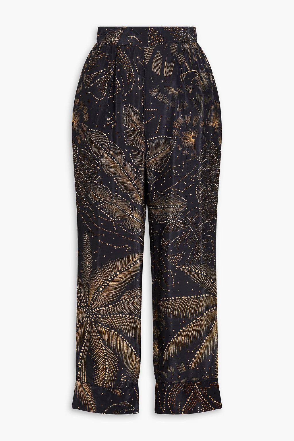 FARM RIO Crystal-embellished printed crepe de chine tapered pants