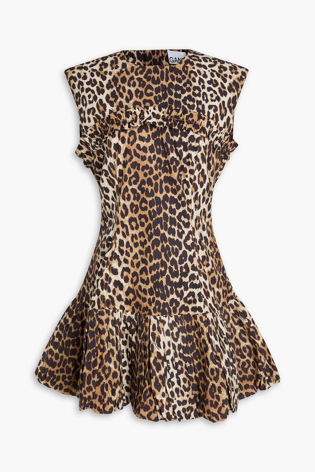 GANNI Leopard-print cotton-poplin mini dress