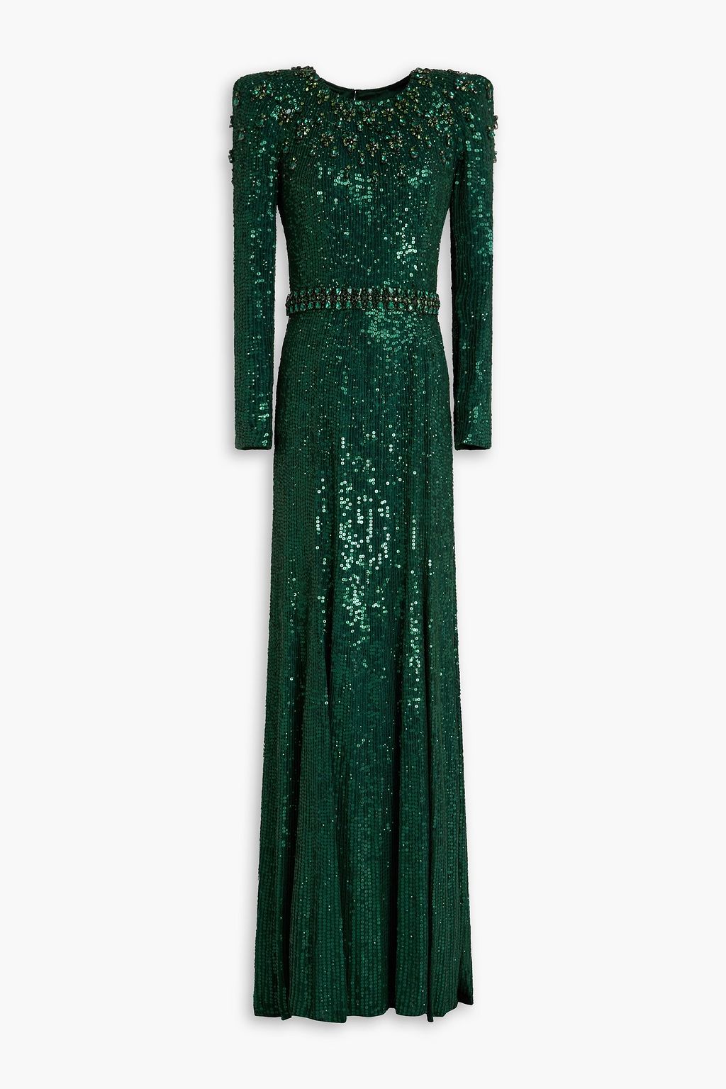 Catch eyes all night in this intricately embellished floor-sweeping design