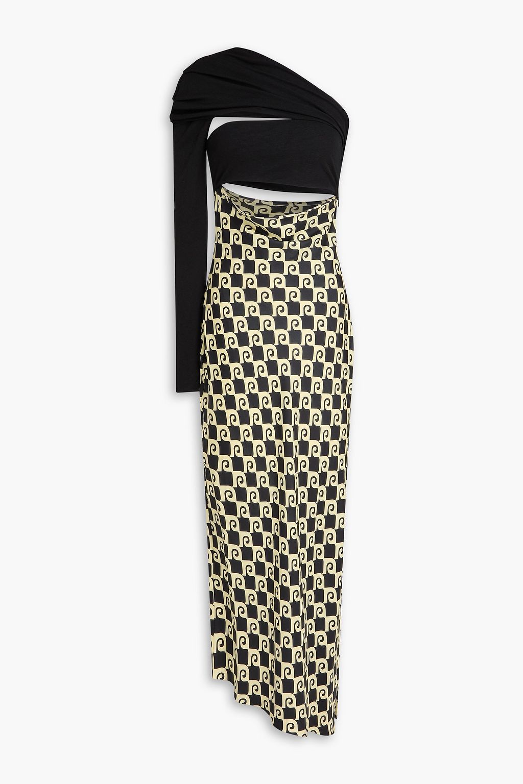 NANUSHKA One-shoulder cutout printed jersey and silk-twill midi dress