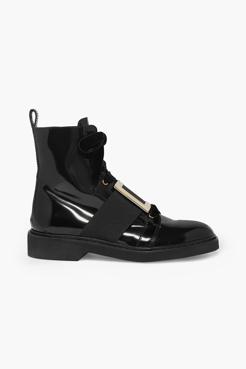 ROGER VIVIER Ranger embellished velvet-trimmed patent-leather ankle boots
