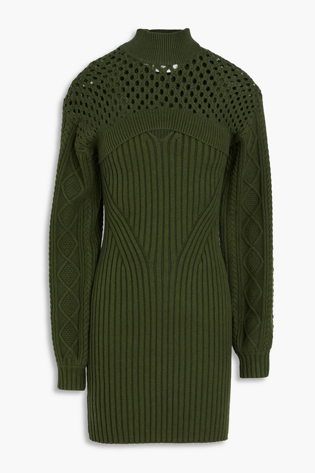 SIMKHAI Layered cable and crochet-knit cotton-blend mini dress