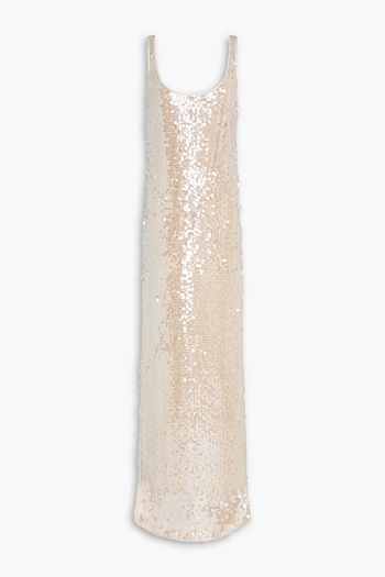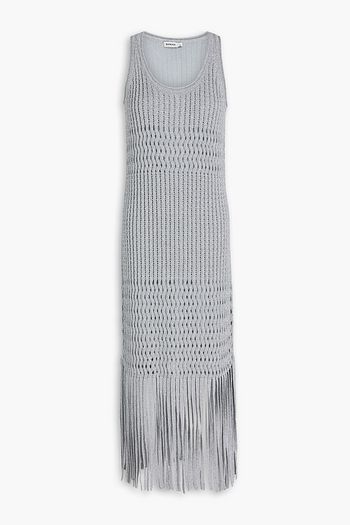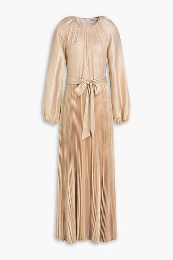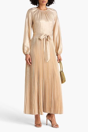 Pleated metallic crepe midi dress