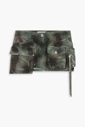 Asymmetric camouflage-print cotton-blend jersey mini skirt