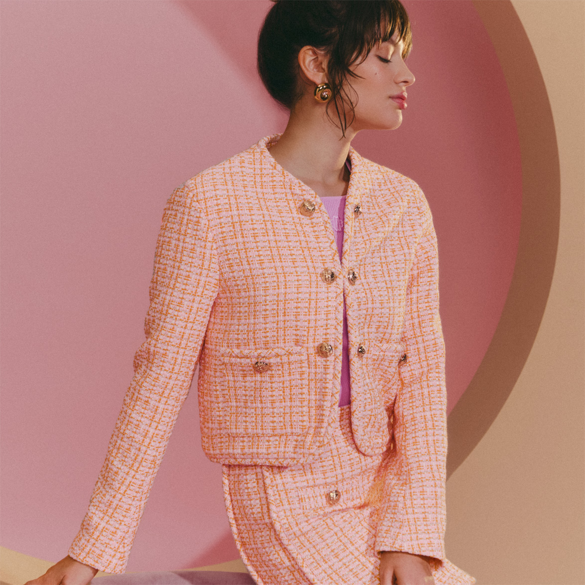 Checked woven coat