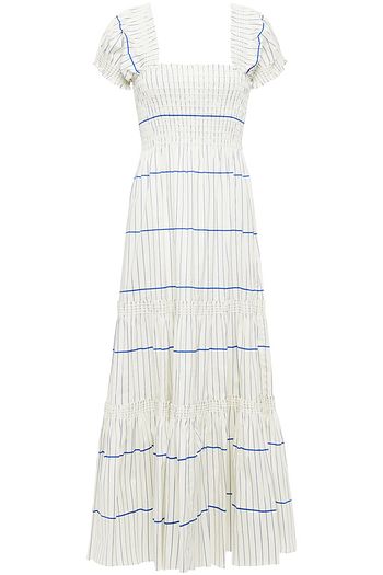 Shirred striped cotton-blend poplin midi dress€503