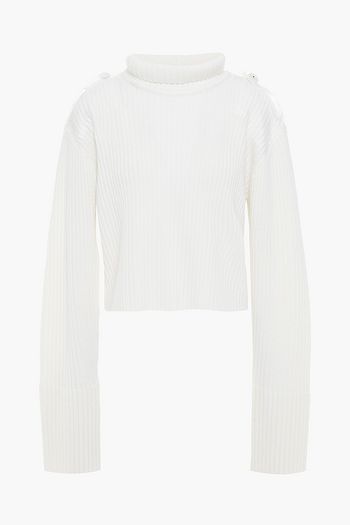 Organza-trimmed ribbed merino wool turtleneck sweater€452