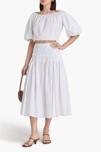 Pleated tiered poplin mini skirt