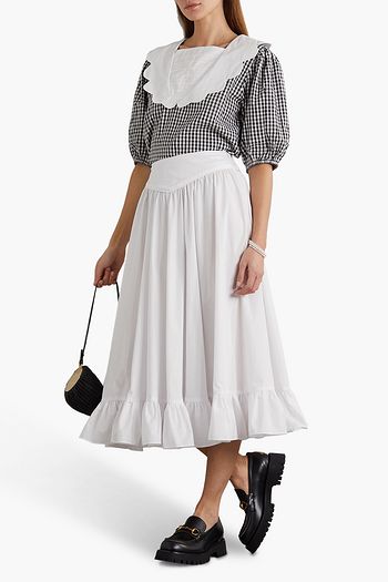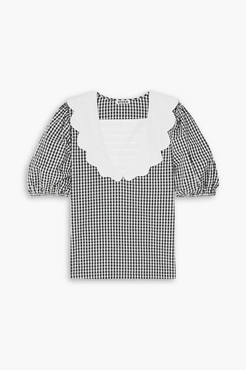 Bevie scalloped gingham cotton-poplin blouse