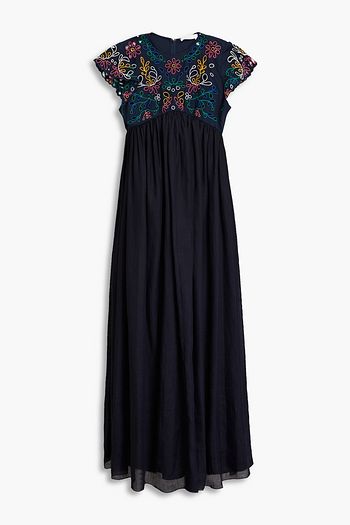 Broderie anglaise hemp paper-blend canvas midi skirt