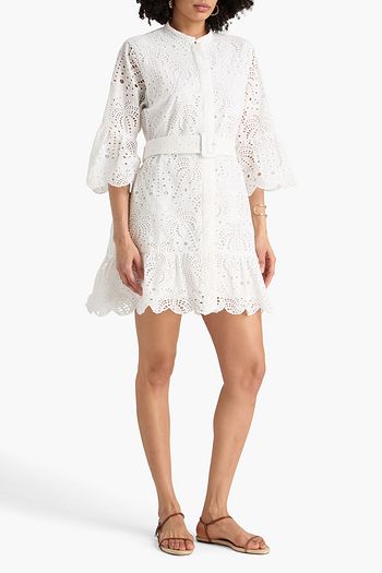 Lace-up printed cotton-voile mini dress
