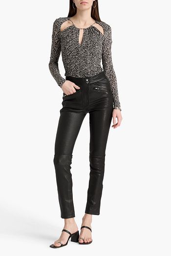 Joneli ruched cutout printed stretch-jersey top