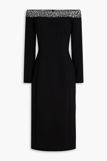 Ballroom Blitz off-the-shoulder crystal-embellished sequined satin midi dress