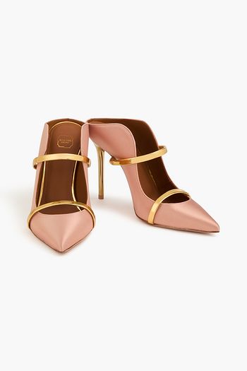 Maureen 70 metallic leather-trimmed satin mules