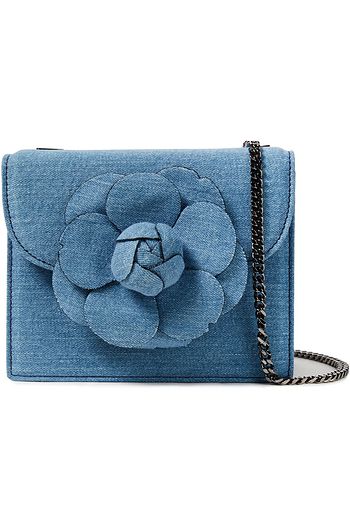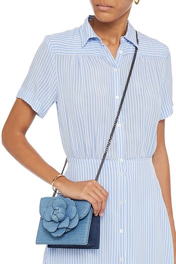Floral-appliquéd denim and faux suede shoulder bag