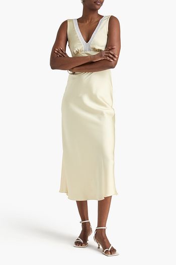 Guipure lace-trimmed satin midi slip dress