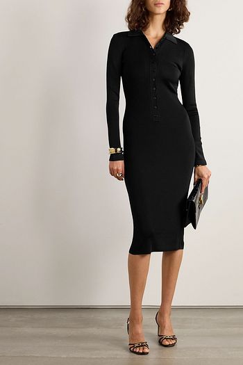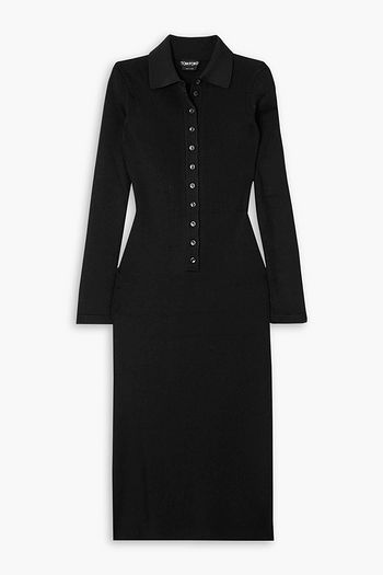 Embellished cutout metallic ribbed cotton-blend midi dress