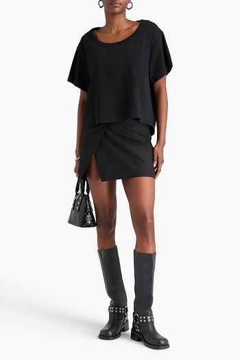 Cutout linen-blend jersey T-shirt