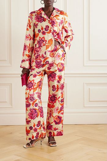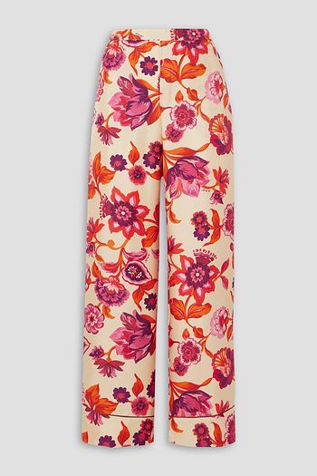 Floral-print silk-twill pajama pants