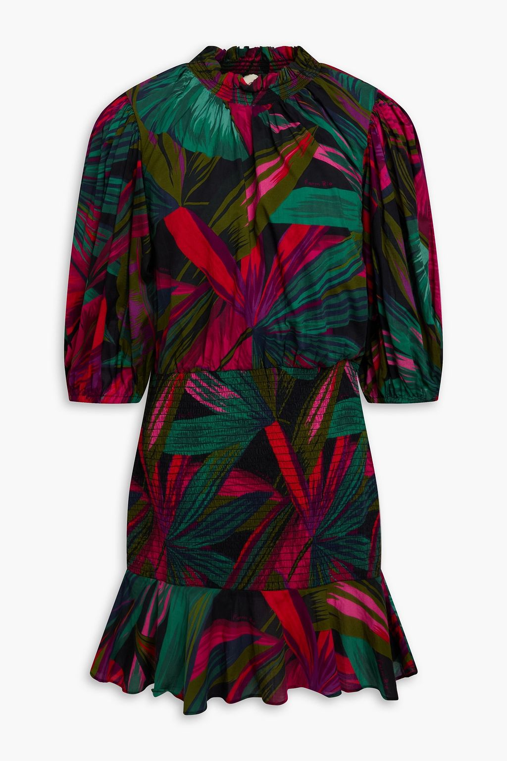 FARM RIO Ruffled printed cotton-voile mini dress