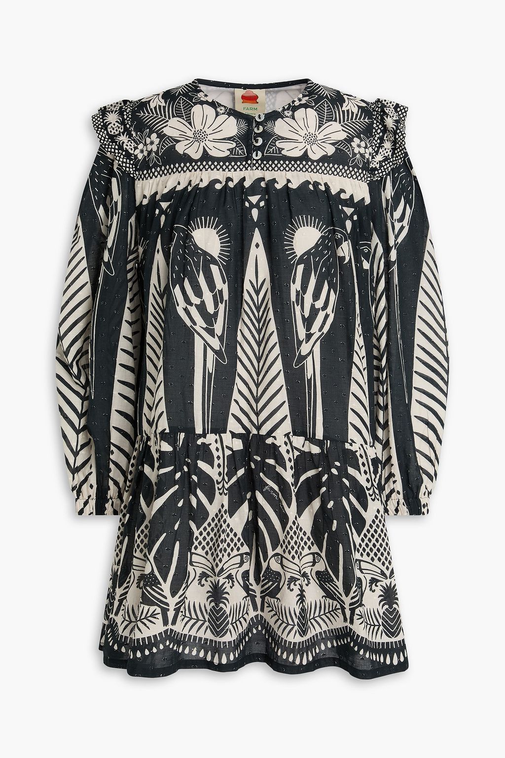 FARM RIO Ruffled printed Swiss-dot cotton mini dress