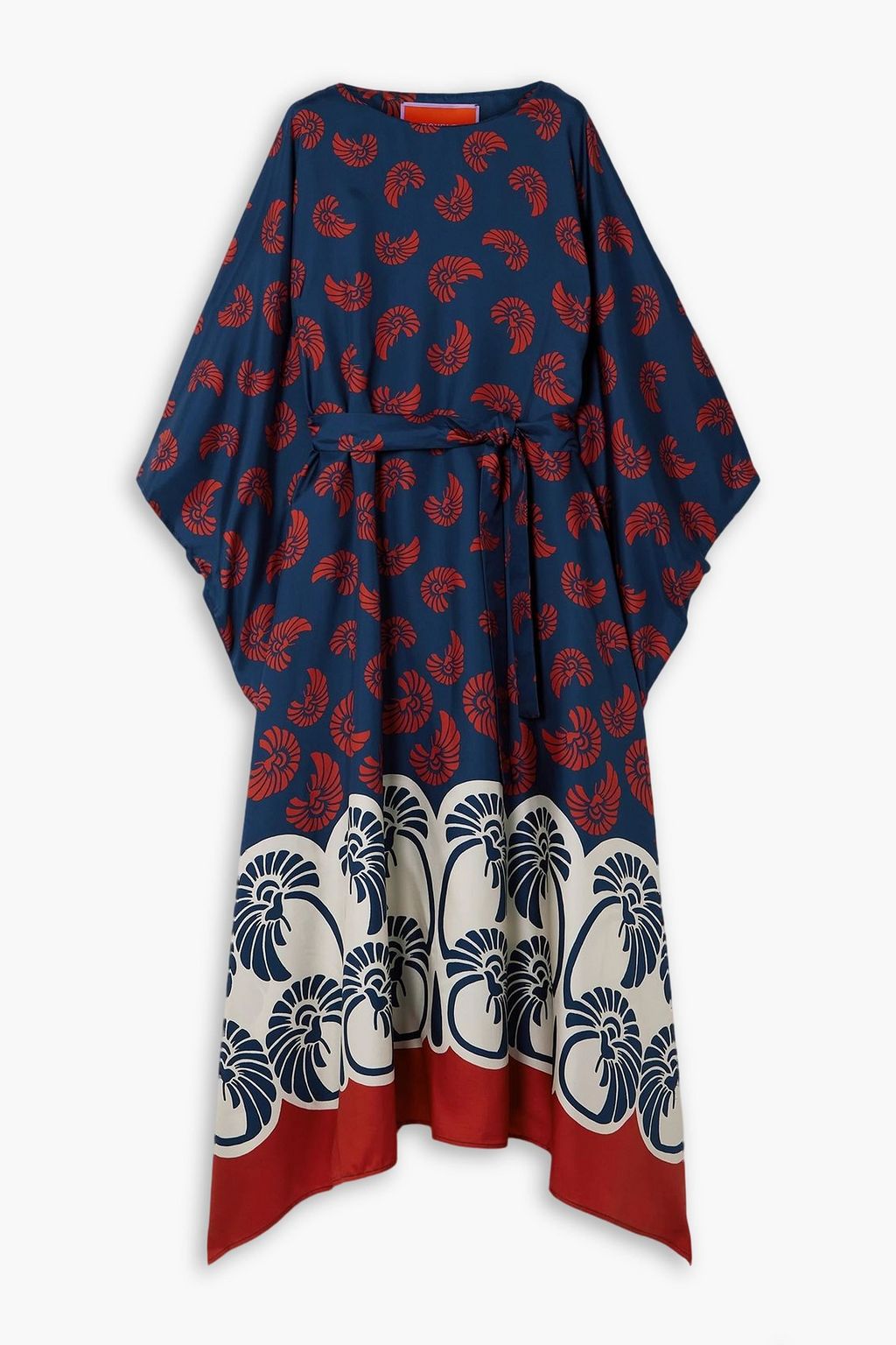 LA DOUBLEJ Belted printed silk-twill kaftan