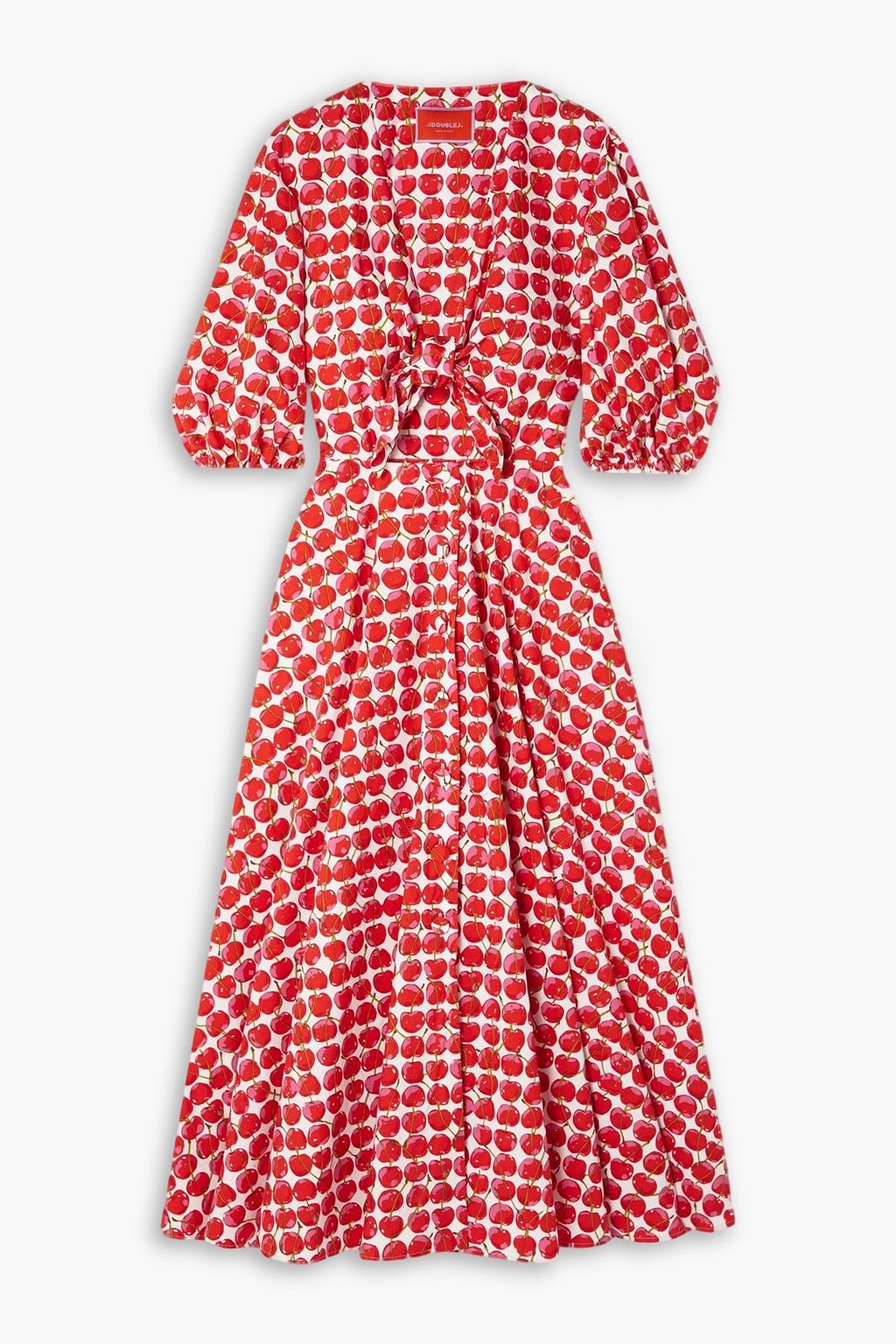 LA DOUBLEJ Peek-A-Boo belted printed cotton-poplin midi dress