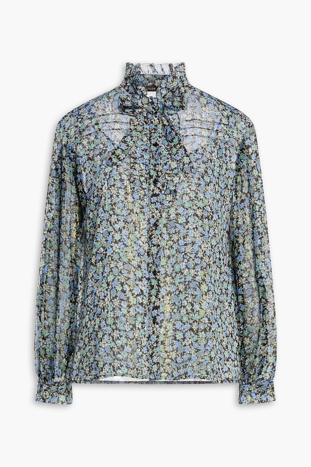 MAJE Floral-print metallic fil coupé chiffon blouse