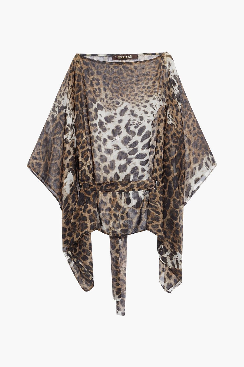 ROBERTO CAVALLI Belted draped leopard-print chiffon blouse