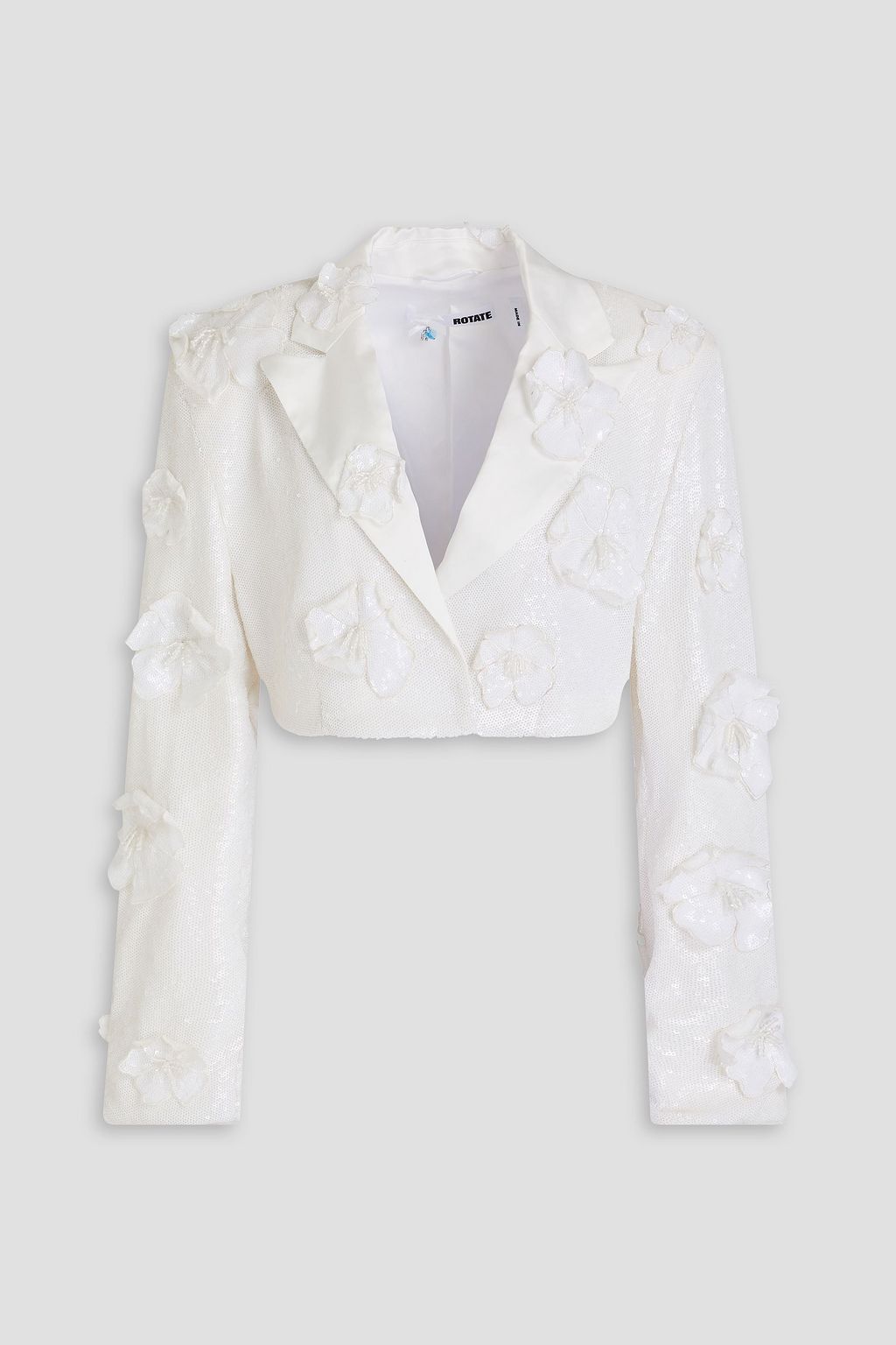 ROTATE BIRGER CHRISTENSEN Cropped floral-appliquéd satin blazer