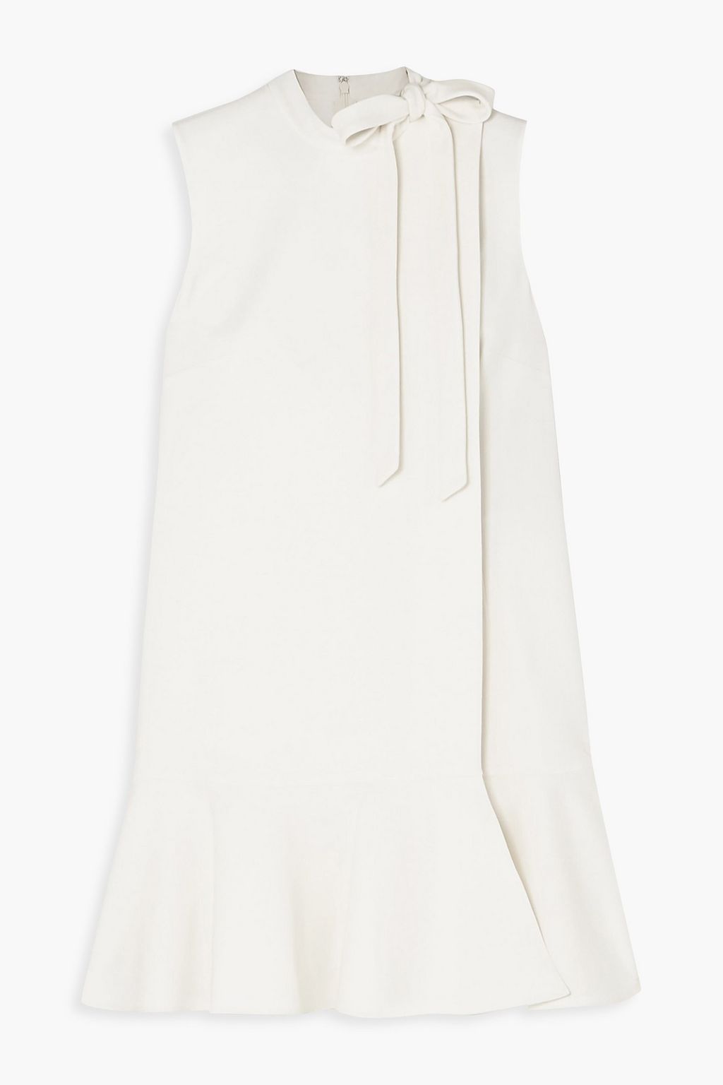 VALENTINO GARAVANI Bow-embellished wrap-effect wool-blend crepe mini dress