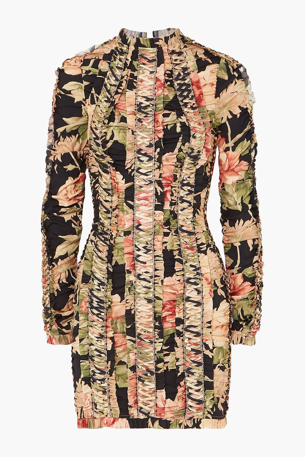 ZIMMERMANN Espionage lace-up floral-print stretch-silk mini dress