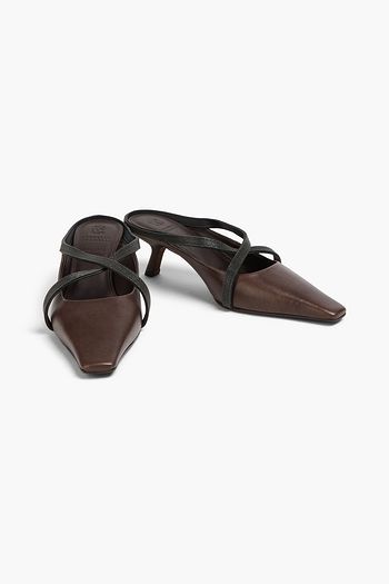 Bead-embellished leather mules
