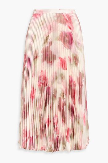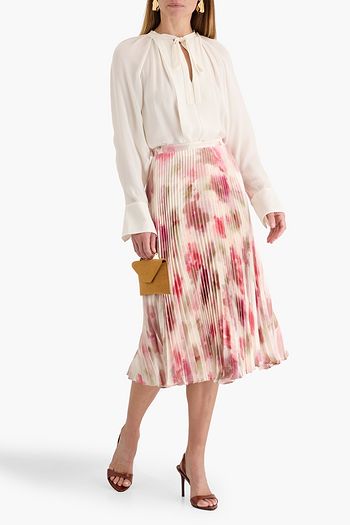 Pleated floral-print crepe de chine midi skirt