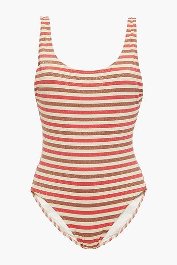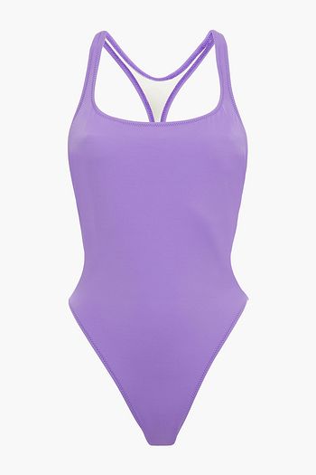 Mare ruffle-trimmed metallic crochet-knit swimsuit