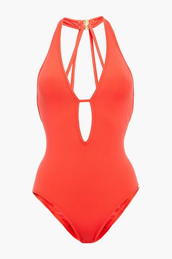 Arden one-shoulder metallic stretch-PVC swimsuit